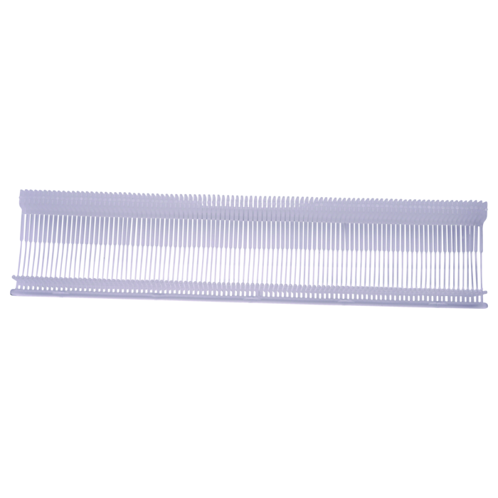 Standard Heftfäden in 13mm Länge aus Polypropylen für einfaches Anschießen von Hängeetiketten an Textilien, geläufig im üblichen Textilhandel und in der Produktion, kann von jeder Standard Heftpistole verarbeitet werden.