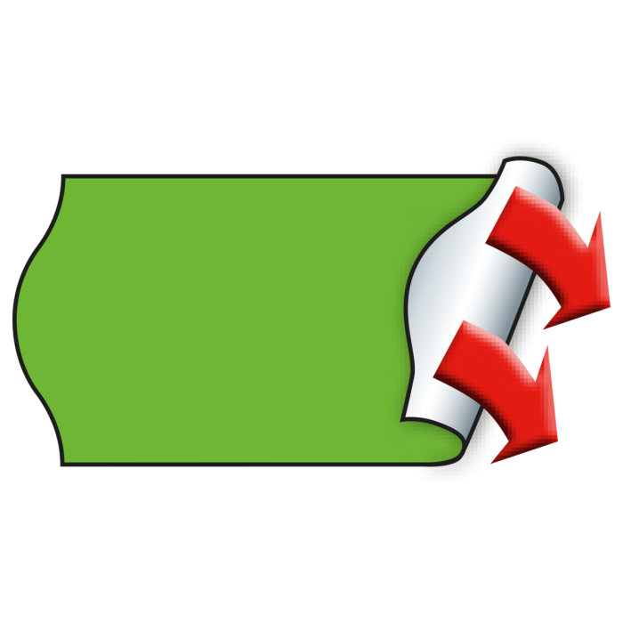 Wellenrand Etiketten im Format 26 x 12 mm in grün, permanent haftend. Im Karton befinden sich 36 Rollen mit je 1500 Etiketten pro Rolle. Die Etiketten sind für den direkten Lebensmittelkontakt geeignet.