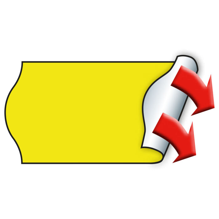 Wellenrand Etiketten im Format 26 x 12 mm in fluor-gelb, permanent haftend. Im Karton befinden sich 36 Rollen mit je 1500 Etiketten pro Rolle. Die Etiketten sind für den direkten Lebensmittelkontakt geeignet.