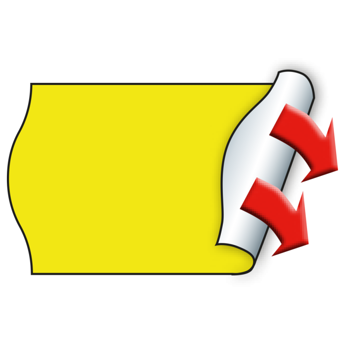 Wellenrand Etiketten im Format 26 x 16 mm in fluor-gelb, permanent haftend. Im Karton befinden sich 36 Rollen mit je 1200 Etiketten pro Rolle. Die Etiketten sind für den direkten Lebensmittelkontakt geeignet.