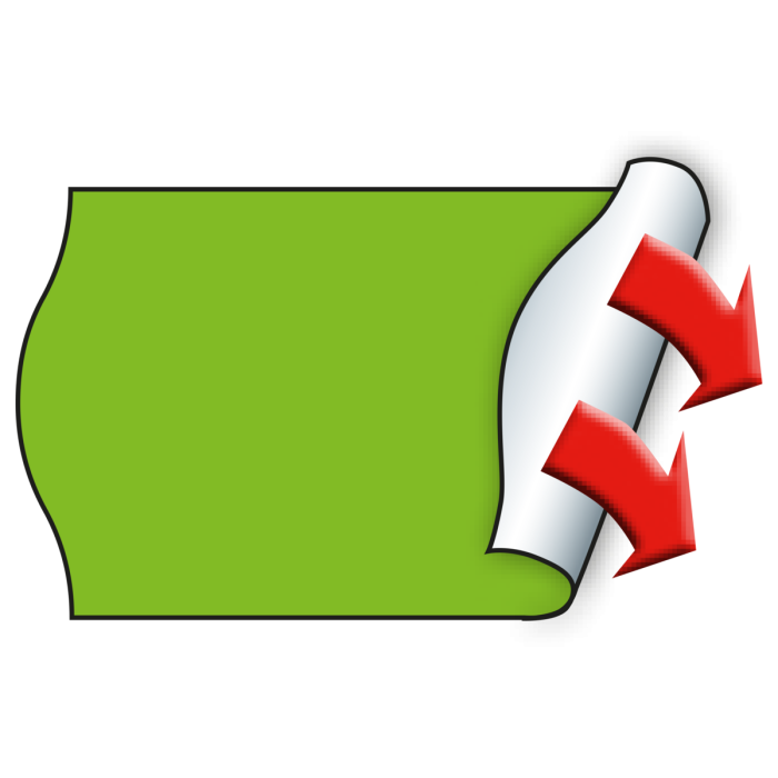 Wellenrand Etiketten im Format 26 x 16 mm in fluor-grün, permanent haftend. Im Karton befinden sich 36 Rollen mit je 1200 Etiketten pro Rolle. Die Etiketten sind für den direkten Lebensmittelkontakt geeignet.