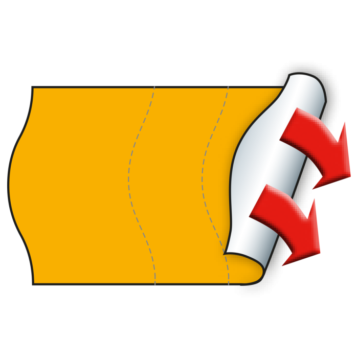 Wellenrand Etiketten im Format 26 x 16 mm in fluor-orange, permanent haftend, mit Sicherheitsschnitt. Im Karton befinden sich 36 Rollen mit je 1200 Etiketten pro Rolle. Die Etiketten sind für den direkten Lebensmittelkontakt geeignet.