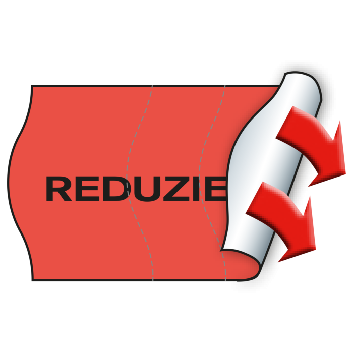 Wellenrand Etiketten im Format 26 x 16 mm in fluor-rot, mit Aufschrift "REDUZIERT", permanent haftend, mit Sicherheitsschnitt.