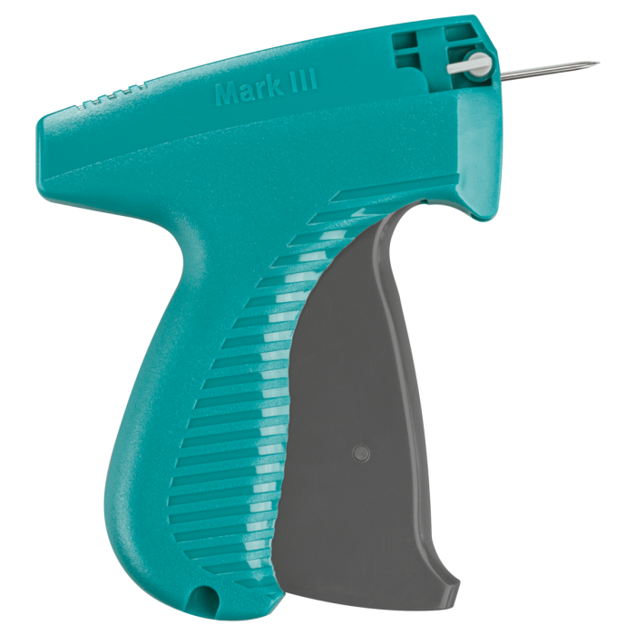 Die Avery Dennison Mark III Etikettierpistole in grün/grau bietet höchste Präzision und Zuverlässigkeit bei der Befestigung von Etiketten an Standard-Stoffen. Ideal für den professionellen Einsatz im Einzelhandel und der Textilindustrie. Mit ergonomischem Design und robuster Konstruktion sorgt sie für eine schnelle, effiziente und mühelose Handhabung.