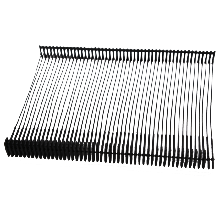 Standard Heftfäden in 65mm Länge aus schwarz eingefärbten Polypropylen für einfaches Anschießen von Hängeetiketten an Textilien, geläufig im üblichen Textilhandel und in der Produktion, kann von jeder Standard Heftpistole verarbeitet werden.