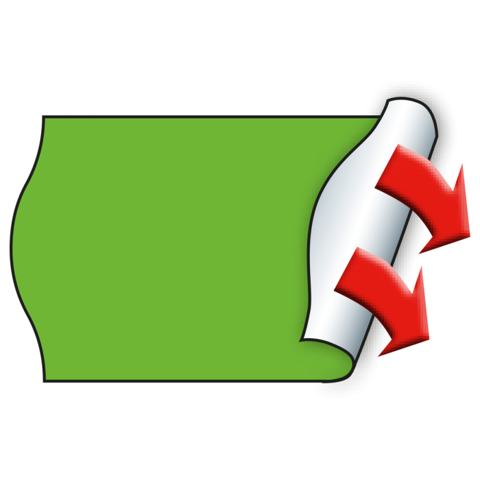 Wellenrand Etiketten im Format 26 x 16 mm in grün, permanent haftend. Im Karton befinden sich 36 Rollen mit je 1200 Etiketten pro Rolle. Die Etiketten sind für den direkten Lebensmittelkontakt geeignet.