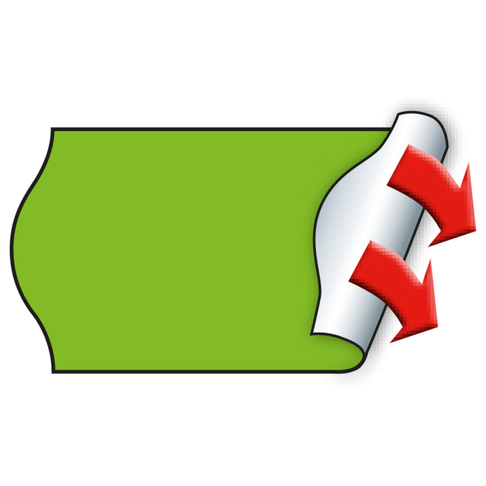 Wellenrand Etiketten im Format 22 x 12 mm in fluor-grün, permanent haftend, mit Sicherheitsschnitt. Im Karton befinden sich 42 Rollen mit je 1500 Etiketten pro Rolle. Die Etiketten sind für den direkten Lebensmittelkontakt geeignet.