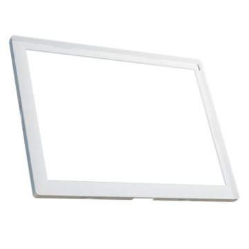 Anpassbares Inlay für das Vusion 9.7 Display, entworfen für die einfache Platzierung in transparenten SnapOn-Rahmen, ideal für schnelle Werbeaktualisierungen.